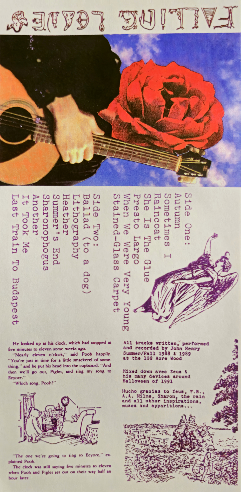 Falling Leaves, John Henry's second cassette release, is an anthology curated from demo tapes recorded between 1987 and 1991. Many of these were leftovers from the demos that became Whatever Happend to the Golden Flake Monster?, or recorded in the aftermath of that project. All tracks recorded by John Henry. Mixed and mastered by David "Zeus" Henderson.